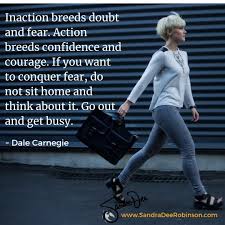 Action breeds confidence and courageDale Carnegie With each ounce of action you take mental resistance grows weaker. Inaction breeds doubt and fear. Inaction breeds doubt and fear. Inaction breeds doubt and fear. If you want to conquer fear do not sit home and think about it. If you want to conquer fear do not sit home and think about it. Dale Carnegie This is a twitter-friendly quote part of a longer quote.