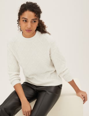 Loja Online JanSport - Modelos Exclusivos e Lançamentos. Donna Karan New York Chunky Ribbed Cable Stitch Pearl Bead Embellished Mock Neck Long Sleeve Statement Sweater. JCrew mohair wool blend fitted sweater 34 sleeves crew neck sweater XS.