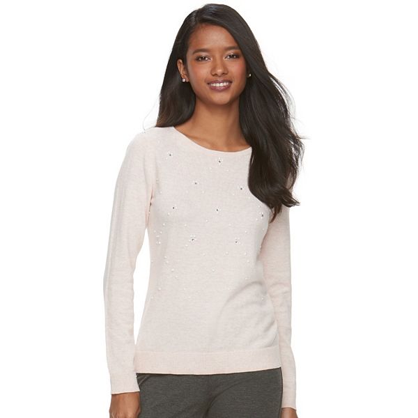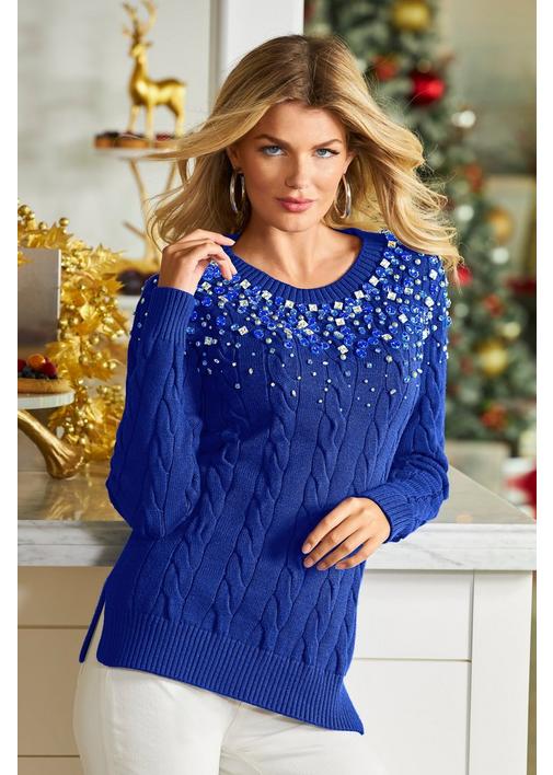 Our classic crewneck sweater is given a festive makeover with a beaded embellishment down the front and sleeves. Get a Sale Alert. Perfect with your favorite pair of jeans and boots.